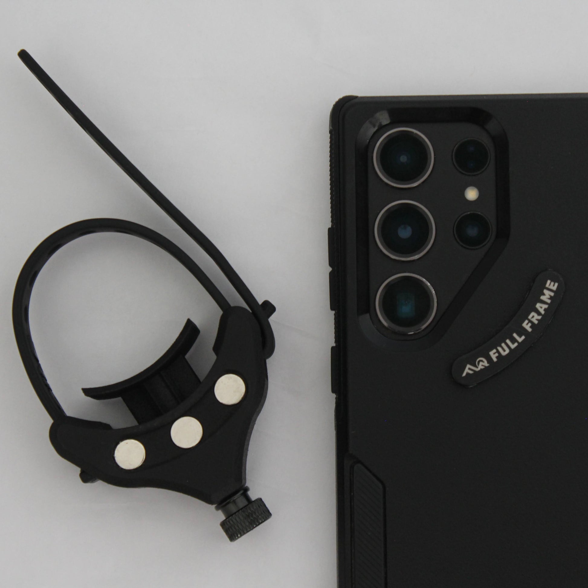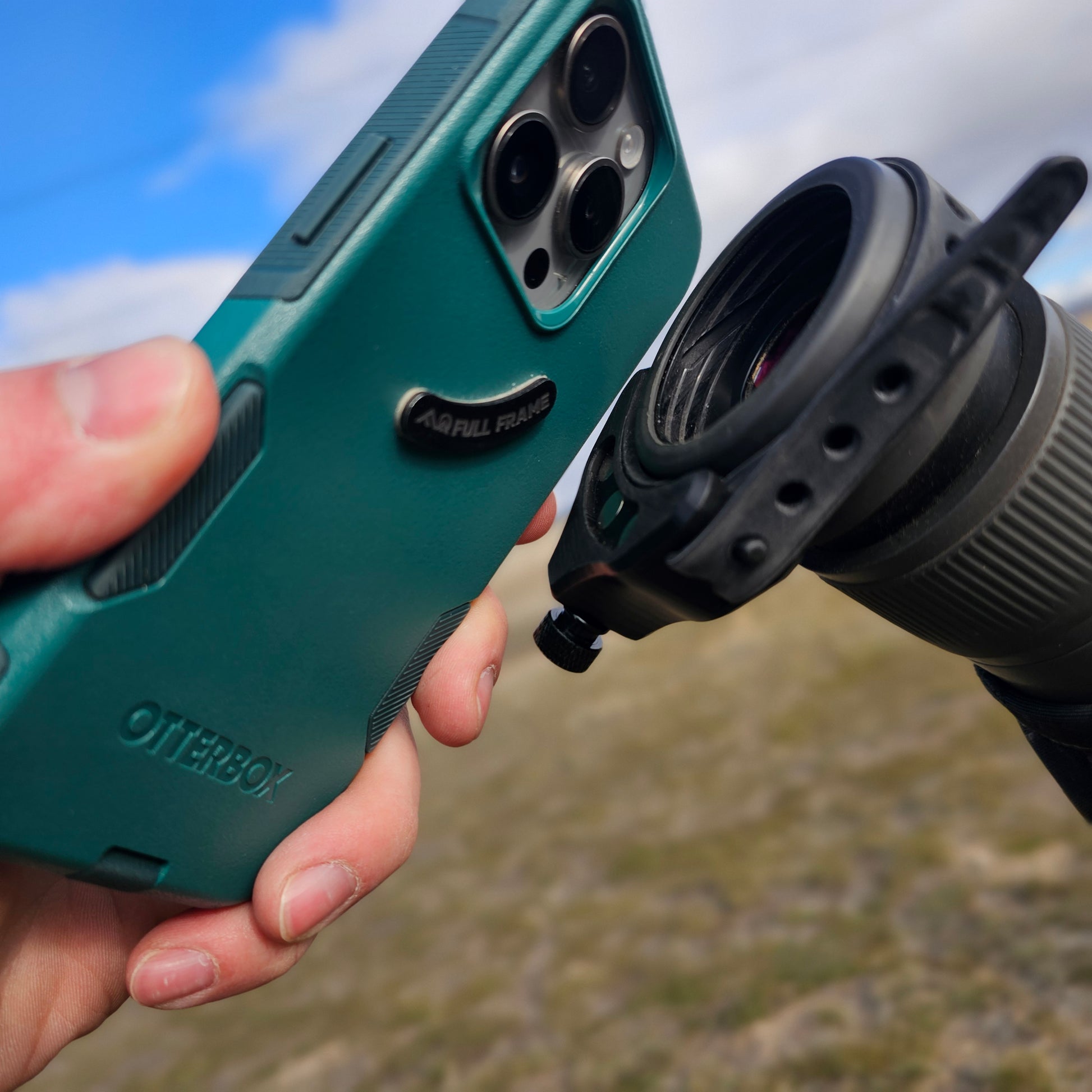 The patented Full Frame digiscoping system comes with the "Nanner", our banana shaped metal clip that attaches to the back of your phone case, our alignment tool, and the adjustable magnetic optics adapter.